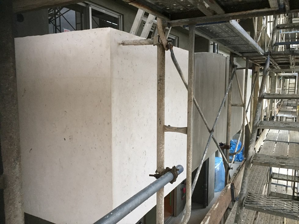 外装タイル ↓ はやく足場が取れるところを見たいです。