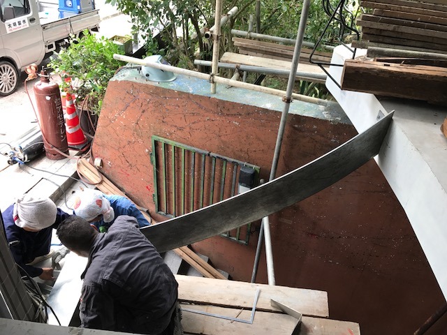 さて、一旦お引渡しをした末吉の現場ですが外部の階段取り付けは地下のお店の部分改装工事と合わせて行うことになっていました。