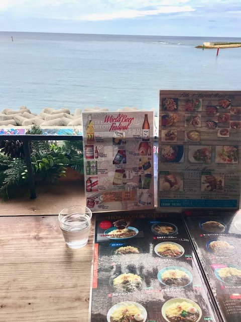 納品後は午後の会議に備え、海の見えるお店でカレーをおいしく頂きました!(^^)!