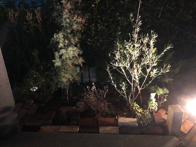 また暗くなるとライトが植物をかっこよく照らしてくれています~