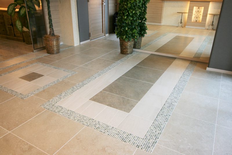 今回応募した案件である、ホテルのロビーの空間を大きく見せる為、タイルと