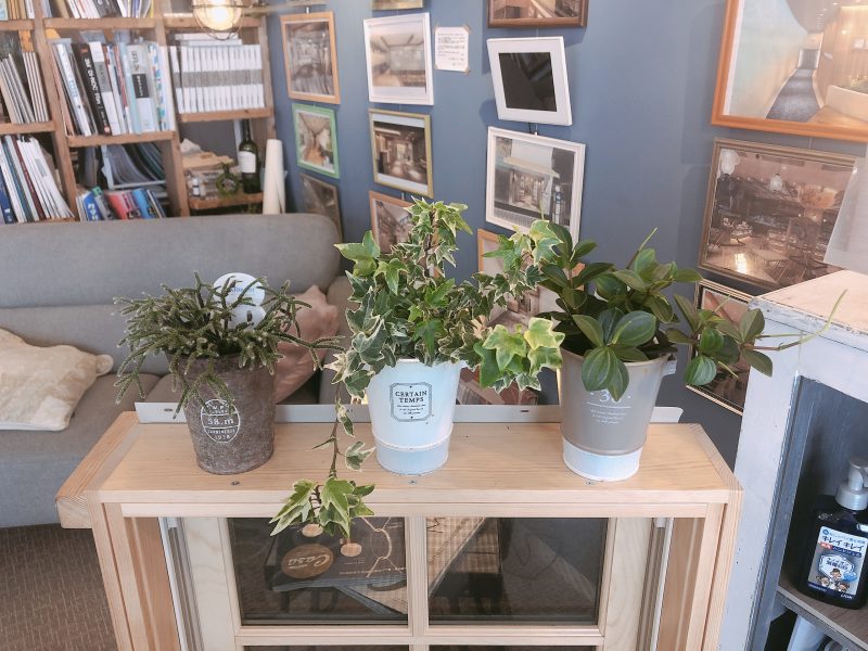 ↑ ↑ アイビーを真ん中に3つの新しい植物。