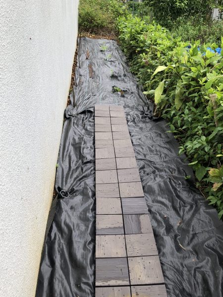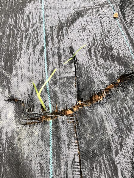 防水シートもかぶせ、これからゴーヤー棚支柱を作るというときでしたが、